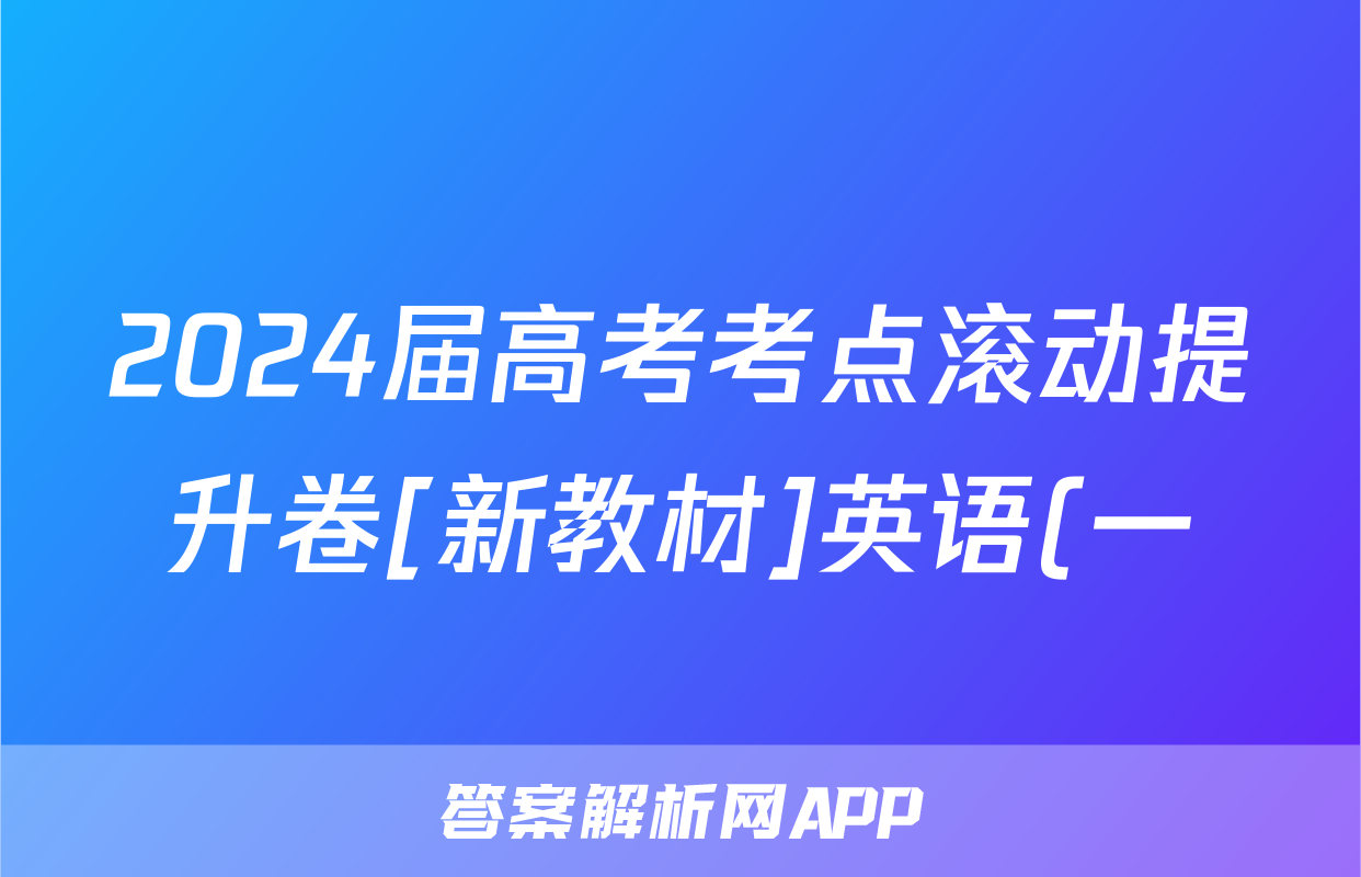 2024届高考考点滚动提升卷[新教材]英语(一)1答案正在持续更新,目前大联考答案为大家整理了相关试题及答案,供大家查缺补漏,高效提升成绩。