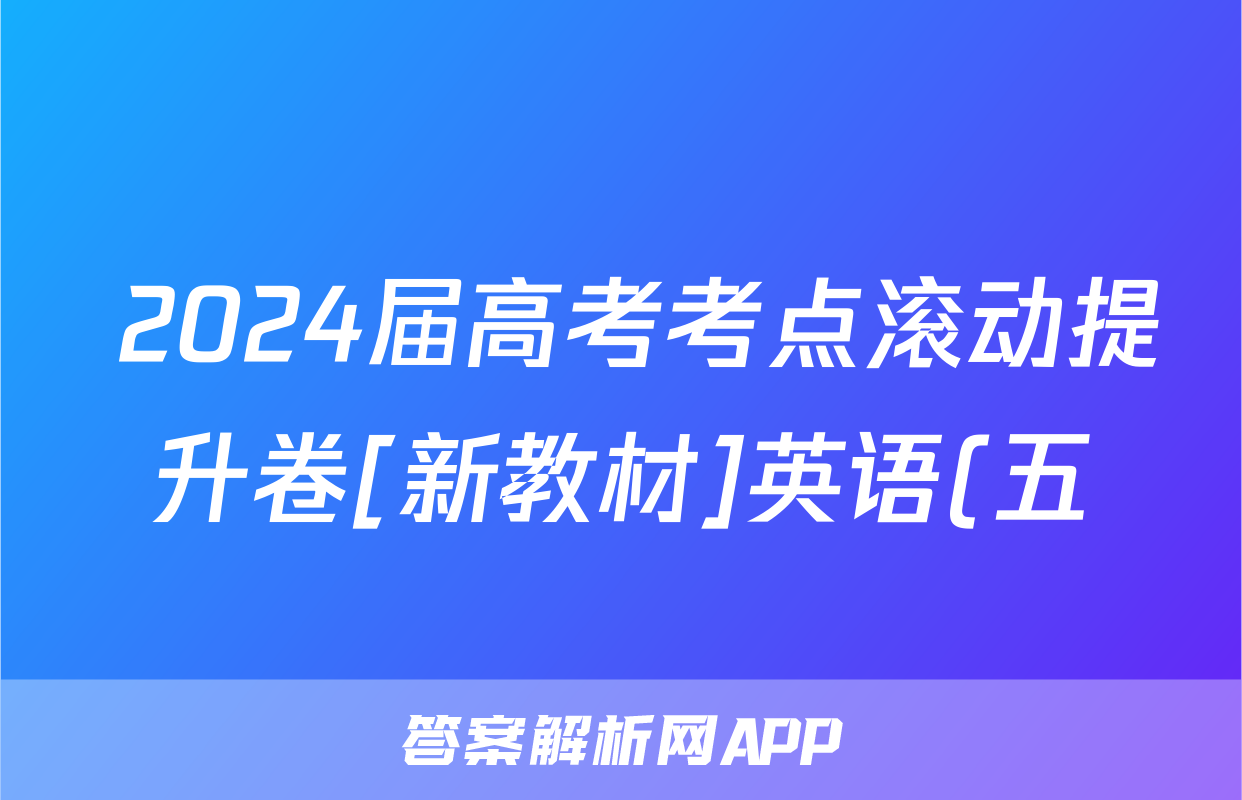 2024届高考考点滚动提升卷[新教材]英语(五)5答案正在持续更新,目前大联考答案为大家整理了相关试题及答案,供大家查缺补漏,高效提升成绩。