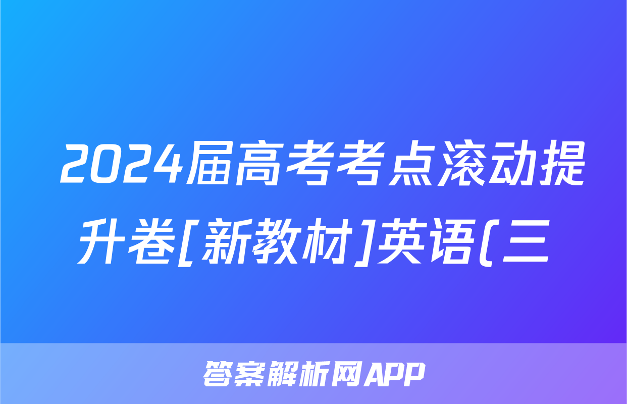 2024届高考考点滚动提升卷[新教材]英语(三)3答案正在持续更新,目前大联考答案为大家整理了相关试题及答案,供大家查缺补漏,高效提升成绩。