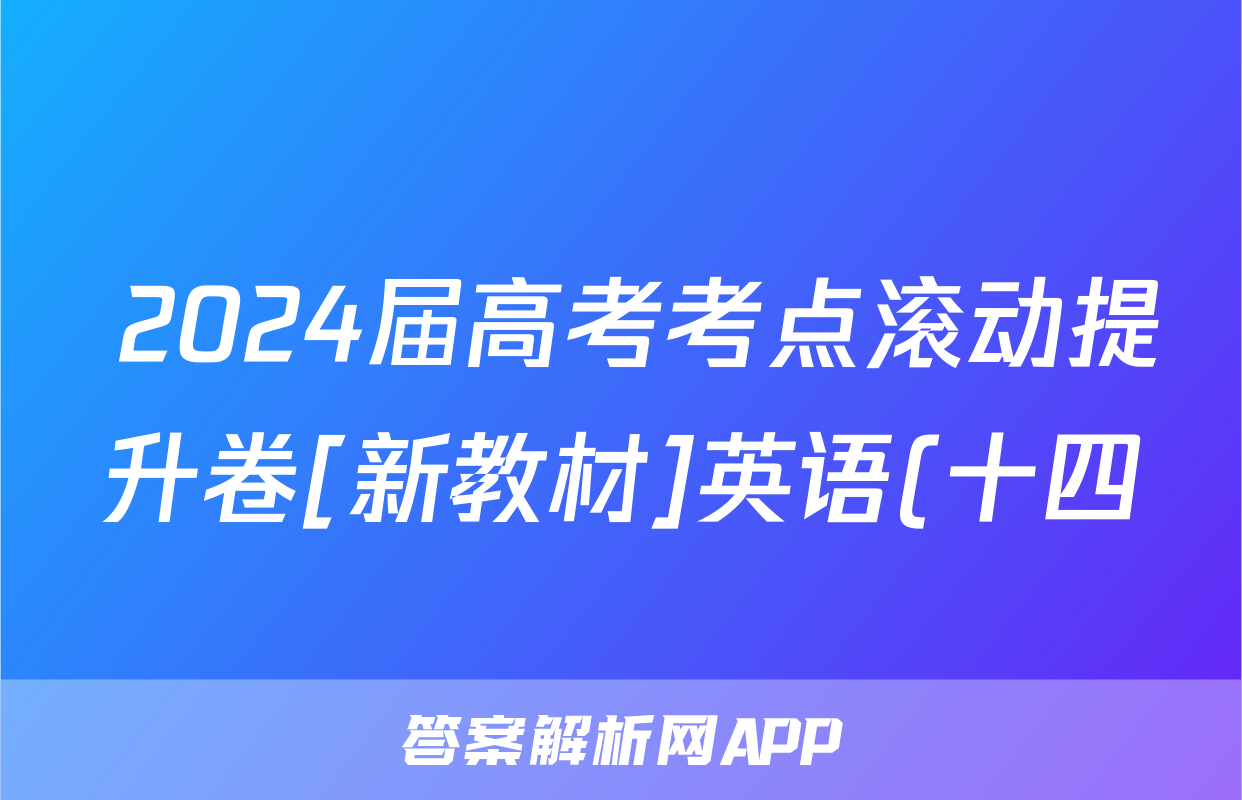 2024届高考考点滚动提升卷[新教材]英语(十四)14答案正在持续更新,目前大联考答案为大家整理了相关试题及答案,供大家查缺补漏,高效提升成绩。
