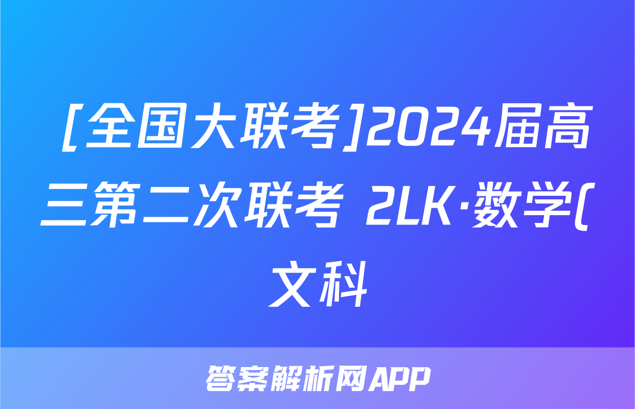 [全国大联考]2024届高三第二次联考 2LK·数学(文科)-QG 文科数学答案正在持续更新,目前大联考答案为大家整理了相关试题及答案,供大家查缺补漏,高效提升成绩。
