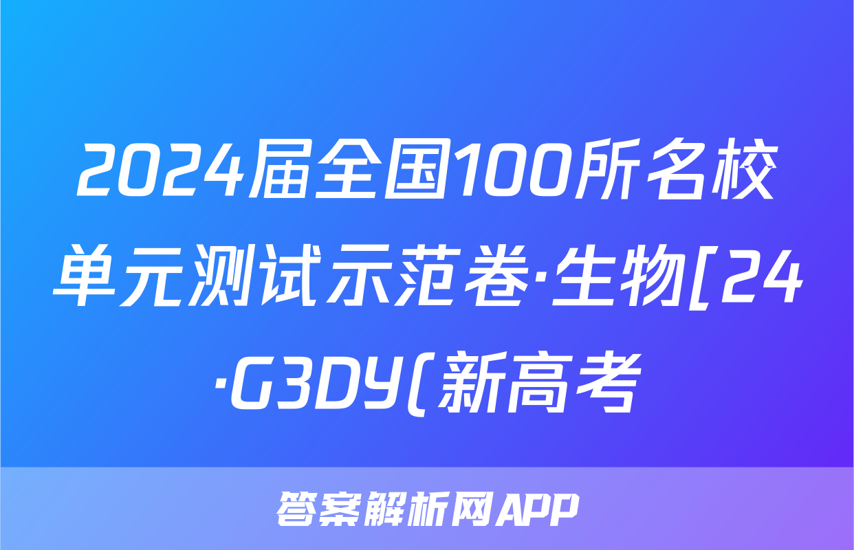 2024届全国100所名校单元测试示范卷·生物[24·G3DY(新高考)·生物-R-必考-QG]一试题正在持续更新,目前大联考答案为大家整理了相关试题及答案,供大家查缺补漏,高效提升成绩。