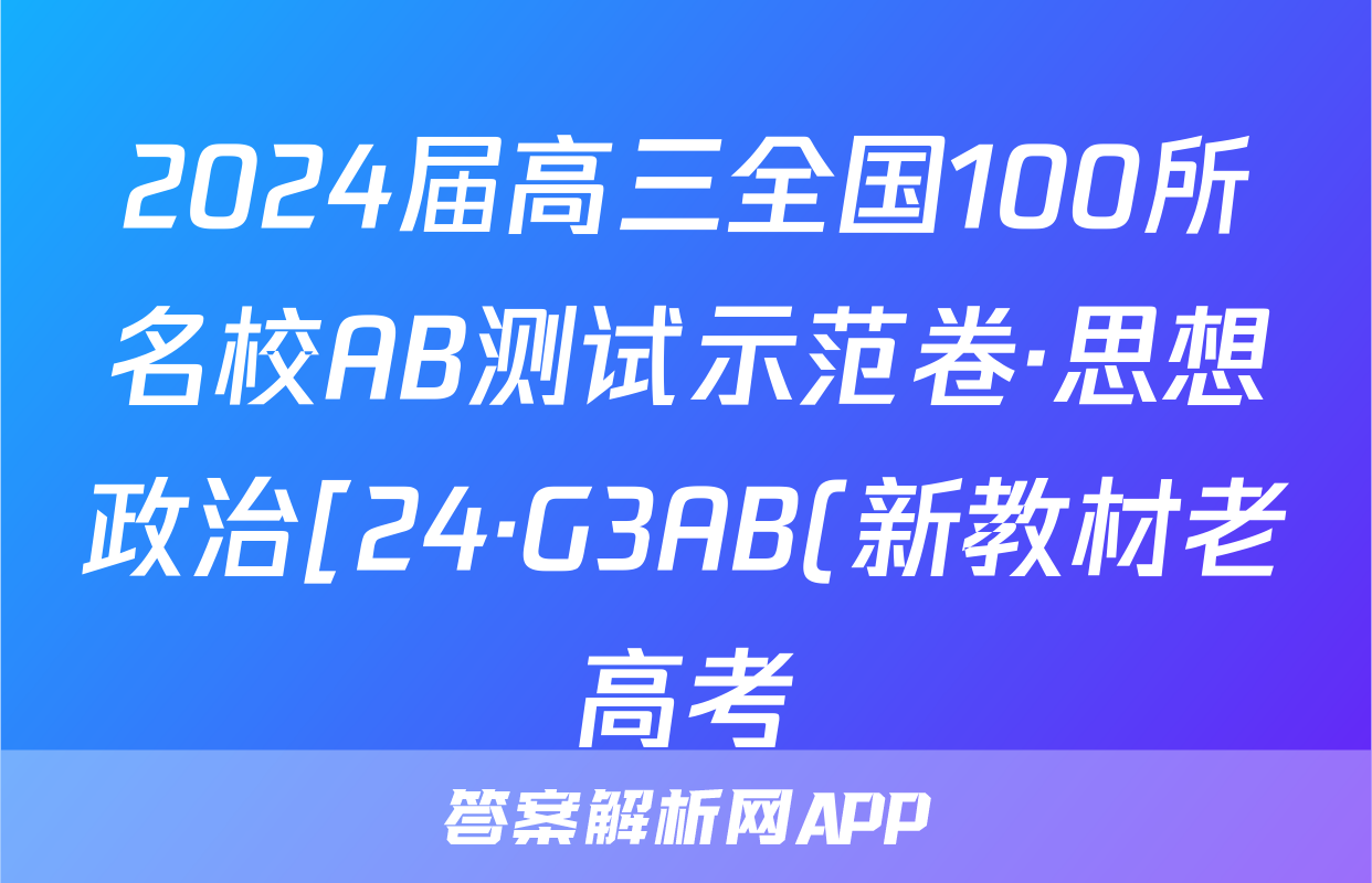 2024届高三全国100所名校AB测试示范卷·思想政治[24·G3AB(新教材老高考)·思想政治-R-必考-SD]四试题正在持续更新,目前大联考答案为大家整理了相关试题及答案,供大家查缺补漏,高效提升成绩。
