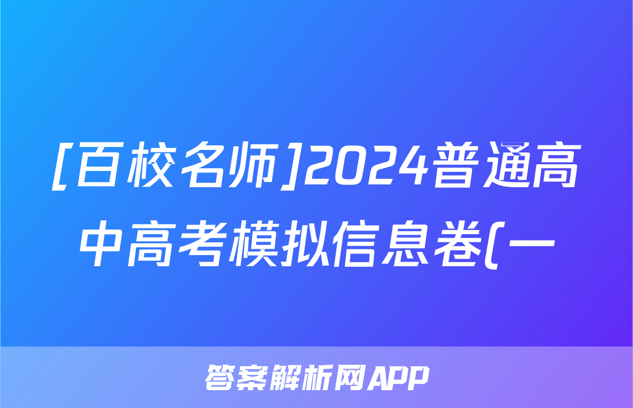 [百校名师]2024普通高中高考模拟信息卷(一)1语文X试题正在持续更新,目前大联考答案为大家整理了相关试题及答案,供大家查缺补漏,高效提升成绩。