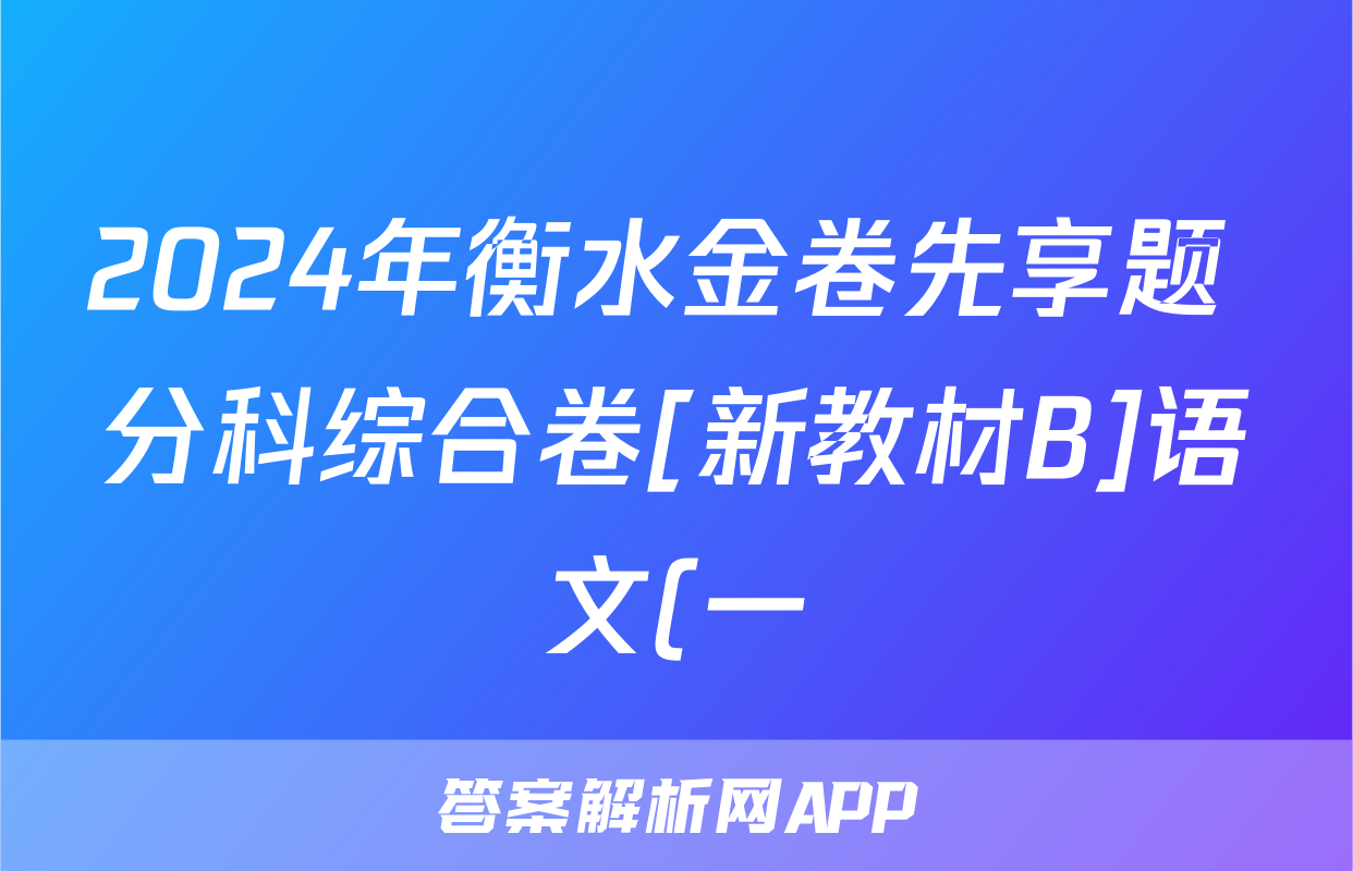 2024年衡水金卷先享题 分科综合卷[新教材B]语文(一)1答案正在持续更新,目前大联考答案为大家整理了相关试题及答案,供大家查缺补漏,高效提升成绩。