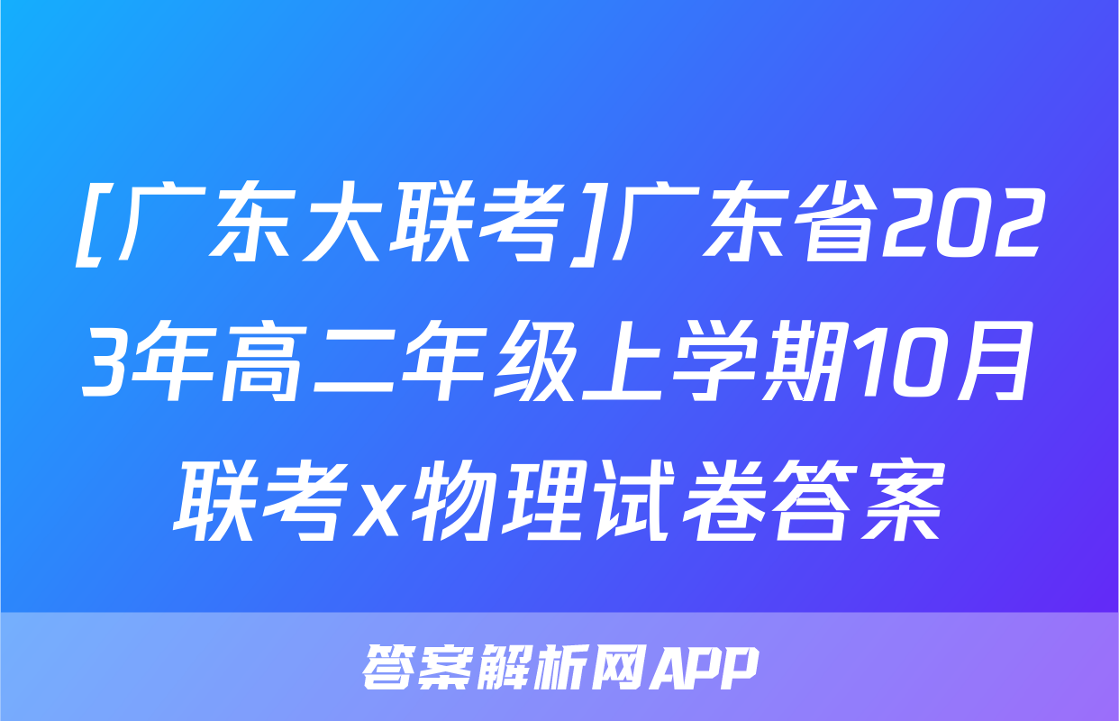 [广东大联考]广东省2023年高二年级上学期10月联考x物理试卷答案正在持续更新,目前大联考答案为大家整理了相关试题及答案,供大家查缺补漏,高效提升成绩。