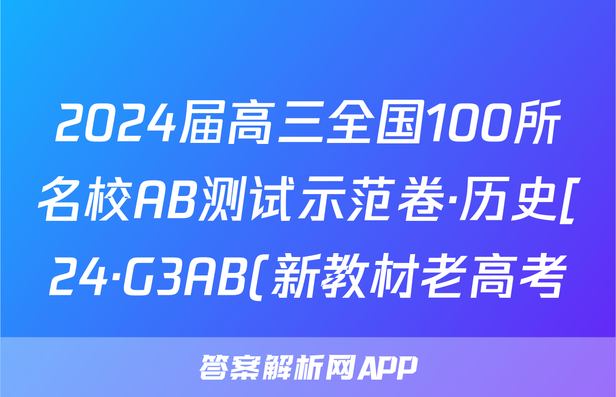 2024届高三全国100所名校AB测试示范卷·历史[24·G3AB(新教材老高考)·历史-R-必考-HUB]二试题正在持续更新,目前大联考答案为大家整理了相关试题及答案,供大家查缺补漏,高效提升成绩。