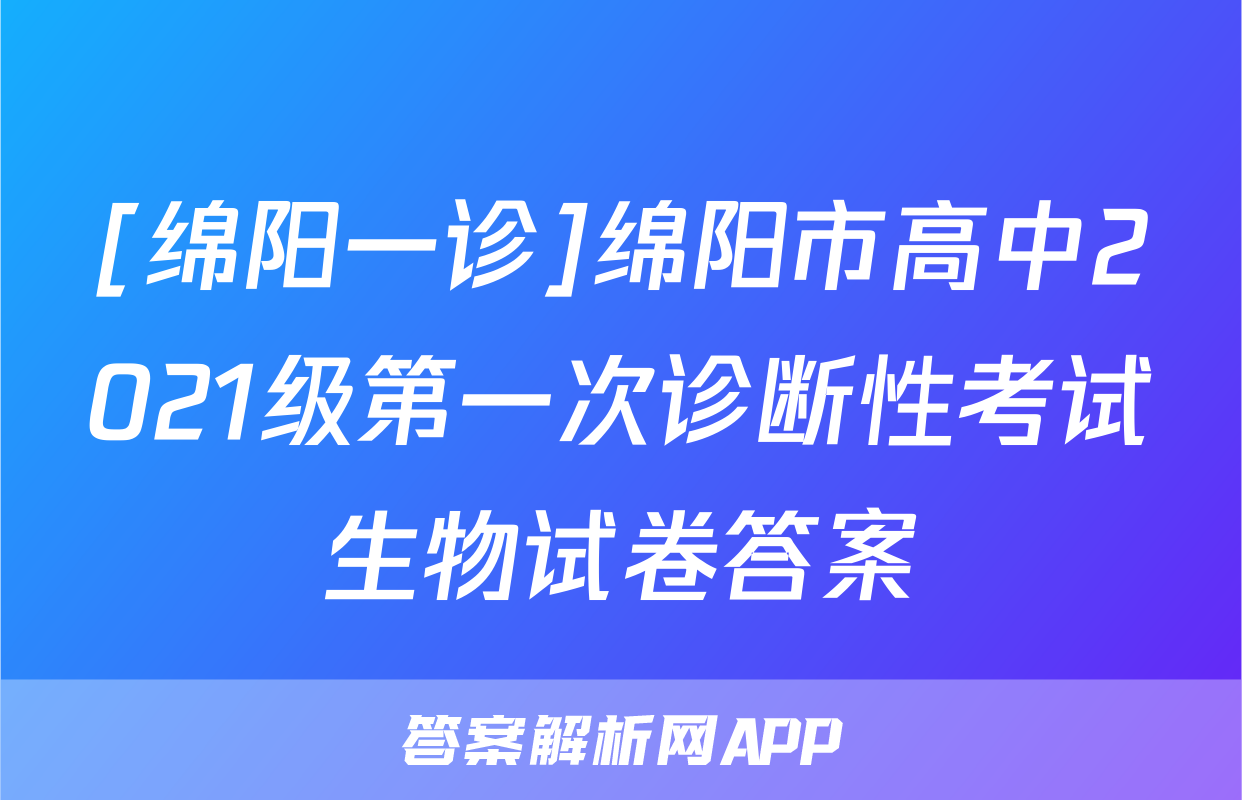 [绵阳一诊]绵阳市高中2021级第一次诊断性考试生物试卷答案正在持续更新,目前大联考答案为大家整理了相关试题及答案,供大家查缺补漏,高效提升成绩。
