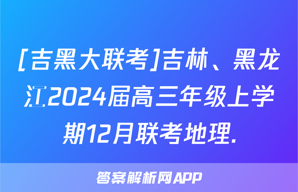 [吉黑大联考]吉林、黑龙江2024届高三年级上学期12月联考地理.正在持续更新,目前大联考答案为大家整理了相关试题及答案,供大家查缺补漏,高效提升成绩。