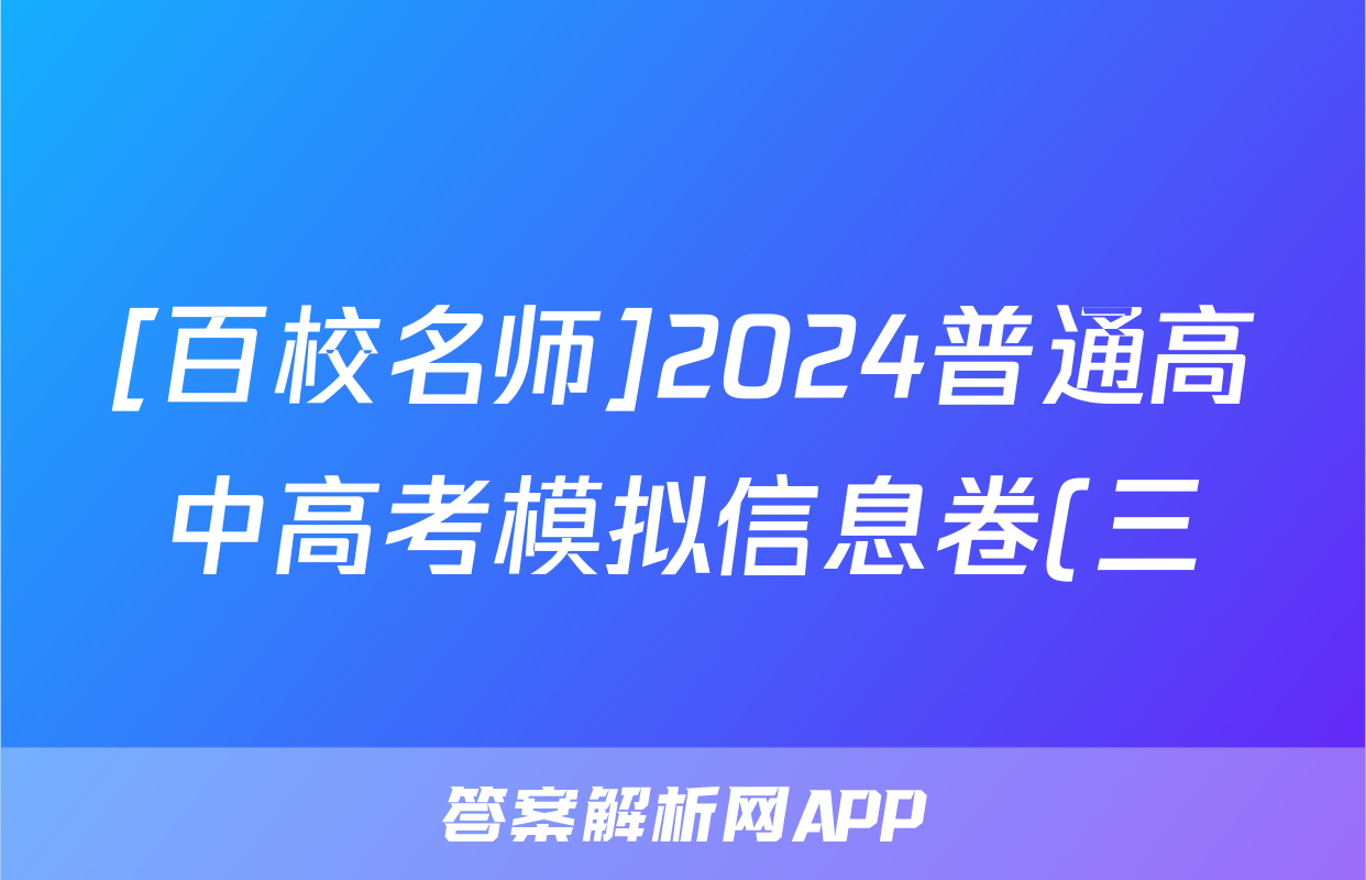 [百校名师]2024普通高中高考模拟信息卷(三)3数学X答案正在持续更新,目前大联考答案为大家整理了相关试题及答案,供大家查缺补漏,高效提升成绩。