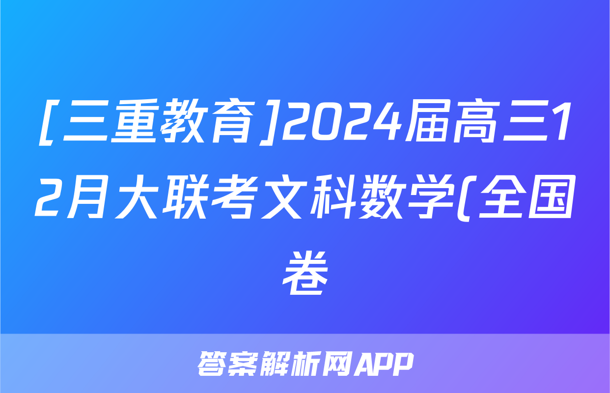 [三重教育]2024届高三12月大联考文科数学(全国卷)试题正在持续更新,目前大联考答案为大家整理了相关试题及答案,供大家查缺补漏,高效提升成绩。