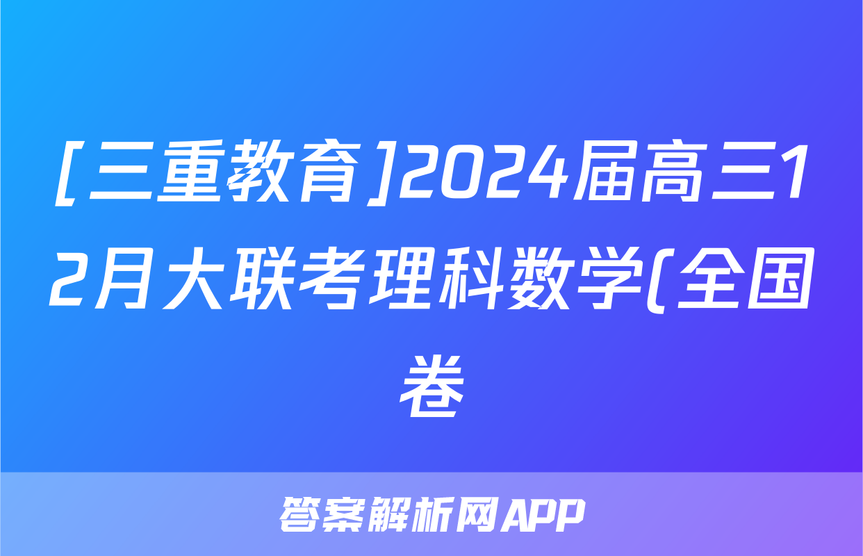 [三重教育]2024届高三12月大联考理科数学(全国卷)试题正在持续更新,目前大联考答案为大家整理了相关试题及答案,供大家查缺补漏,高效提升成绩。