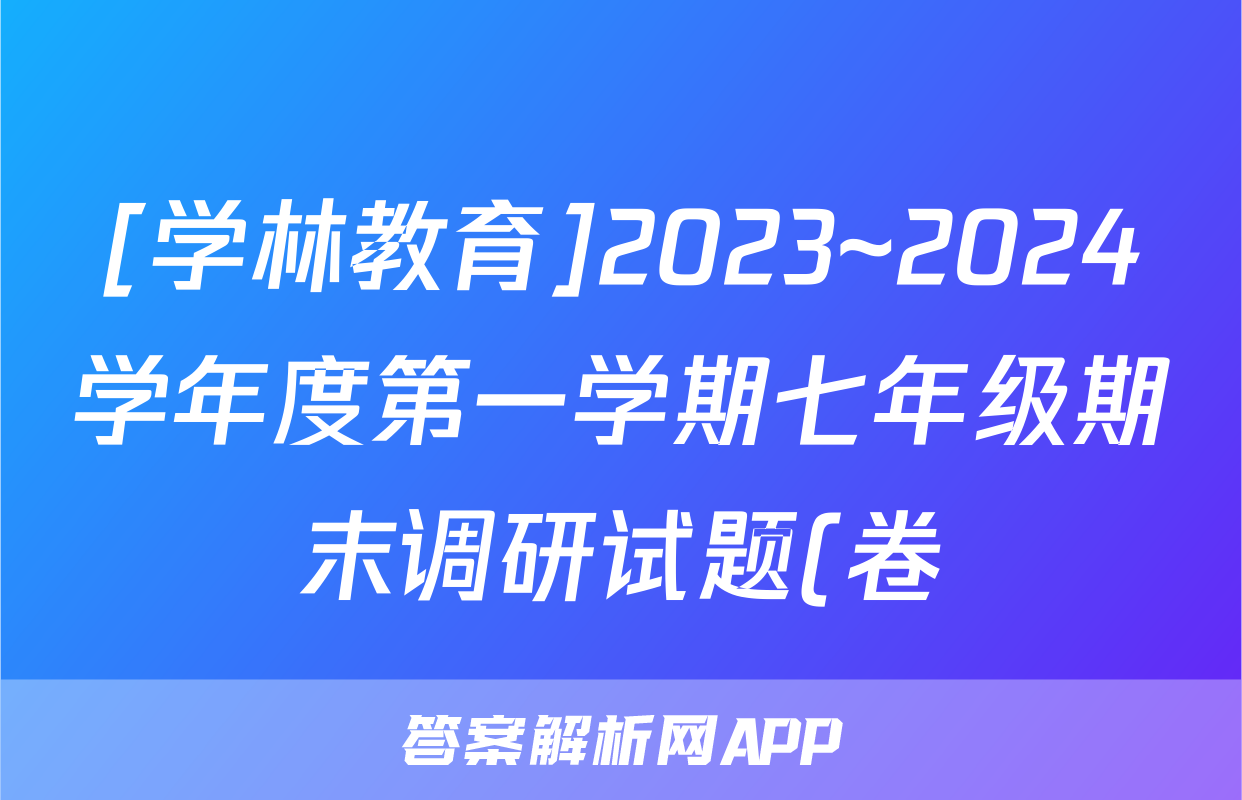 [学林教育]2023~2024学年度第一学期七年级期末调研试题(卷)道德与法治C(部编版)答案正在持续更新,目前大联考答案为大家整理了相关试题及答案,供大家查缺补漏,高效提升成绩。