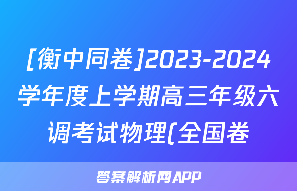[衡中同卷]2023-2024学年度上学期高三年级六调考试物理(全国卷)答案正在持续更新,目前大联考答案为大家整理了相关试题及答案,供大家查缺补漏,高效提升成绩。