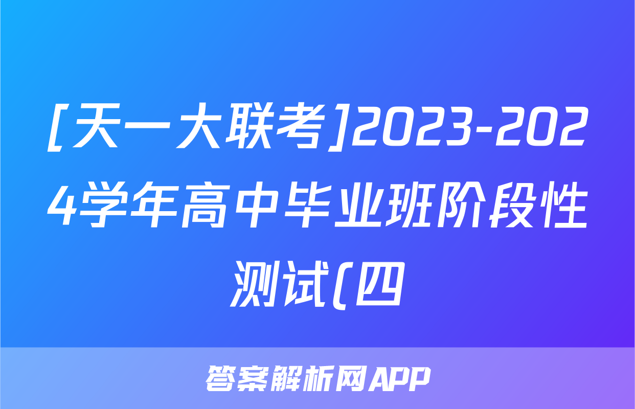[天一大联考]2023-2024学年高中毕业班阶段性测试(四)4物理(专版)答案正在持续更新,目前大联考答案为大家整理了相关试题及答案,供大家查缺补漏,高效提升成绩。