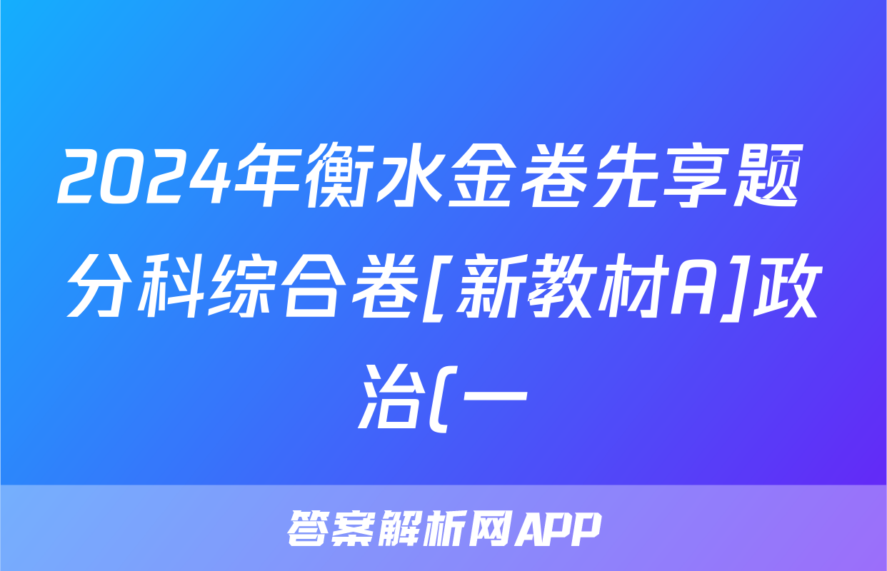 2024年衡水金卷先享题 分科综合卷[新教材A]政治(一)1试题正在持续更新,目前大联考答案为大家整理了相关试题及答案,供大家查缺补漏,高效提升成绩。