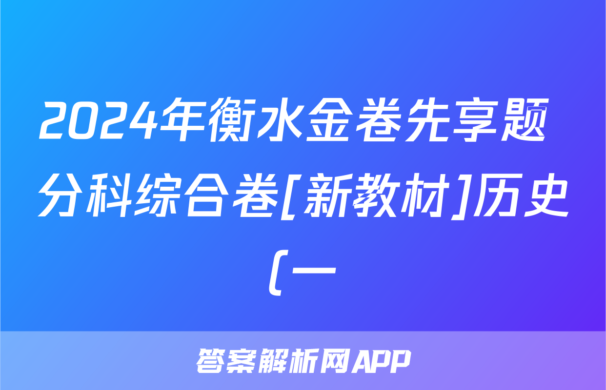 2024年衡水金卷先享题 分科综合卷[新教材]历史(一)1试题正在持续更新,目前大联考答案为大家整理了相关试题及答案,供大家查缺补漏,高效提升成绩。