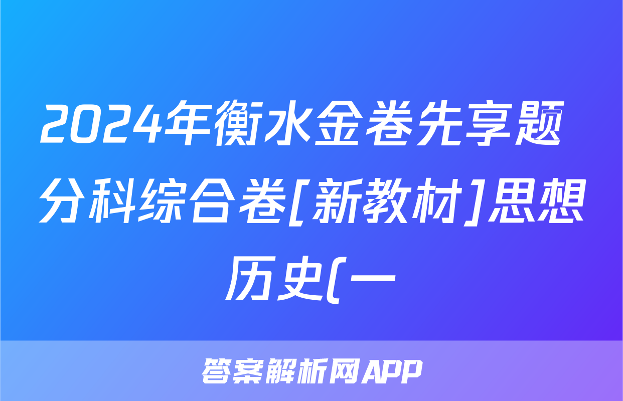 2024年衡水金卷先享题 分科综合卷[新教材]思想历史(一)1试题正在持续更新,目前大联考答案为大家整理了相关试题及答案,供大家查缺补漏,高效提升成绩。