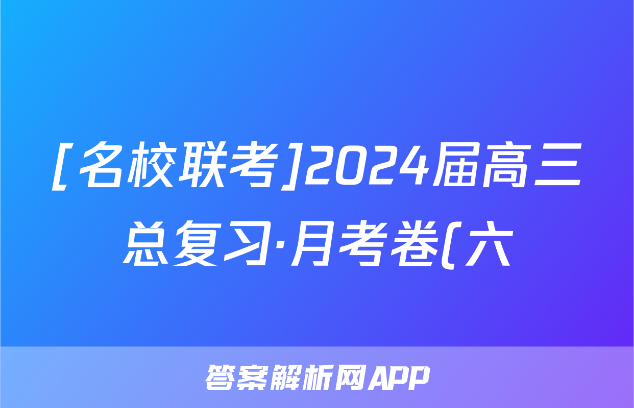 [名校联考]2024届高三总复习·月考卷(六)6生物AHX4试题正在持续更新,目前大联考答案为大家整理了相关试题及答案,供大家查缺补漏,高效提升成绩。