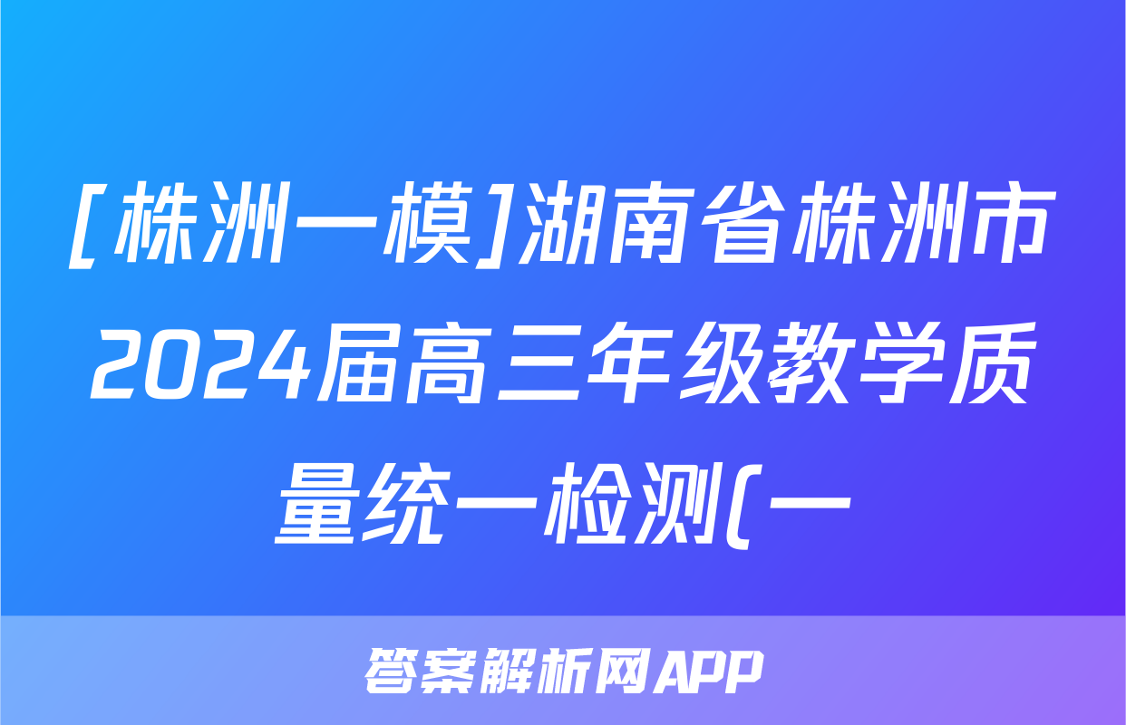 [株洲一模]湖南省株洲市2024届高三年级教学质量统一检测(一)语文试题正在持续更新,目前大联考答案为大家整理了相关试题及答案,供大家查缺补漏,高效提升成绩。