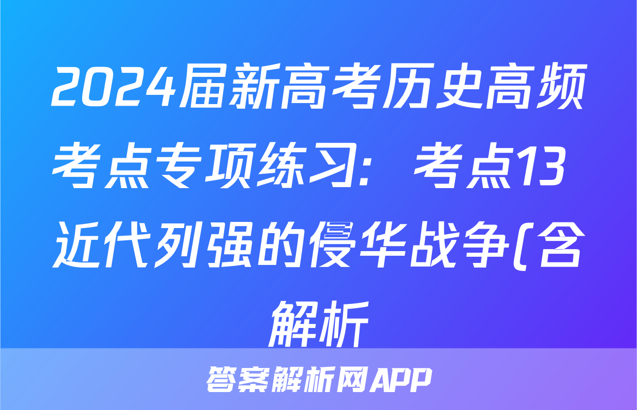 2024届新高考历史高频考点专项练习: 考点13 近代列强的侵华战争(含解析)考试试卷正在持续更新,目前大联考答案为大家整理了相关试题及答案,供大家查缺补漏,高效提升成绩。