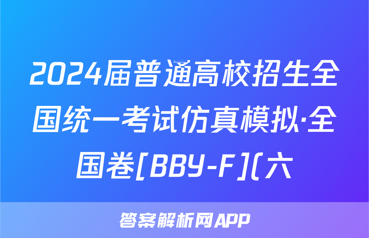 2024届普通高校招生全国统一考试仿真模拟·全国卷[BBY-F](六)6语文试题正在持续更新,目前大联考答案为大家整理了相关试题及答案,供大家查缺补漏,高效提升成绩。