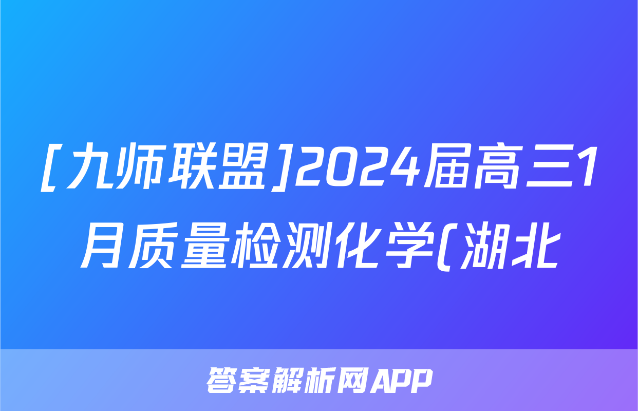 [九师联盟]2024届高三1月质量检测化学(湖北)试题正在持续更新,目前大联考答案为大家整理了相关试题及答案,供大家查缺补漏,高效提升成绩。