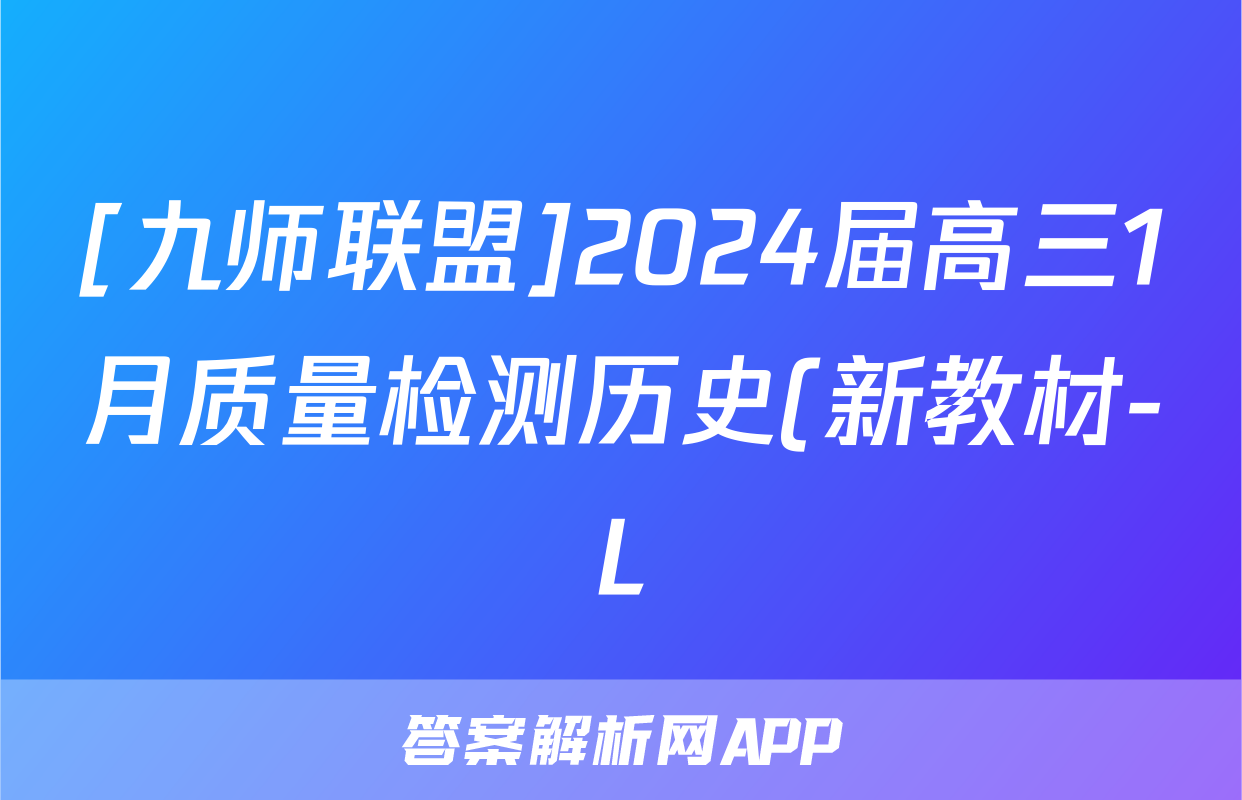 [九师联盟]2024届高三1月质量检测历史(新教材-L)试题正在持续更新,目前大联考答案为大家整理了相关试题及答案,供大家查缺补漏,高效提升成绩。