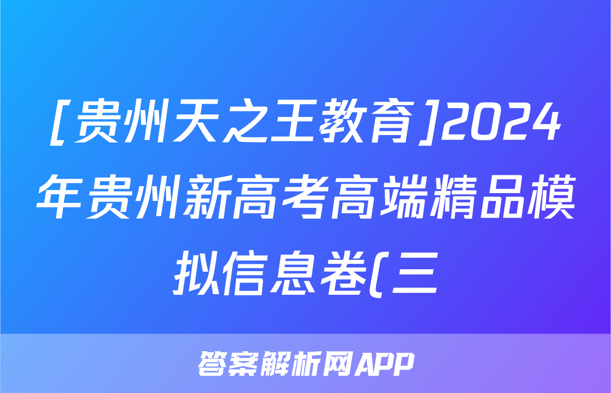 [贵州天之王教育]2024年贵州新高考高端精品模拟信息卷(三)3历史答案正在持续更新,目前大联考答案为大家整理了相关试题及答案,供大家查缺补漏,高效提升成绩。