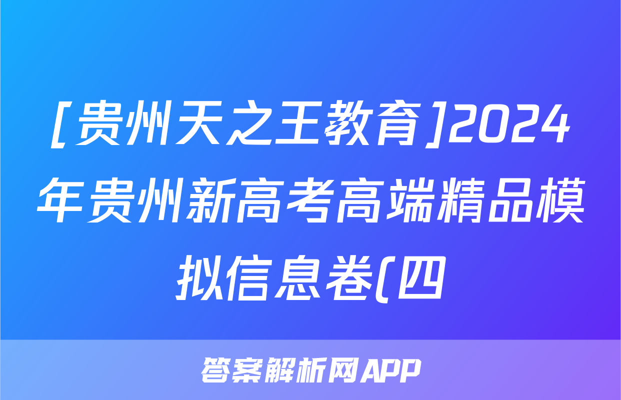 [贵州天之王教育]2024年贵州新高考高端精品模拟信息卷(四)4化学试题正在持续更新,目前大联考答案为大家整理了相关试题及答案,供大家查缺补漏,高效提升成绩。