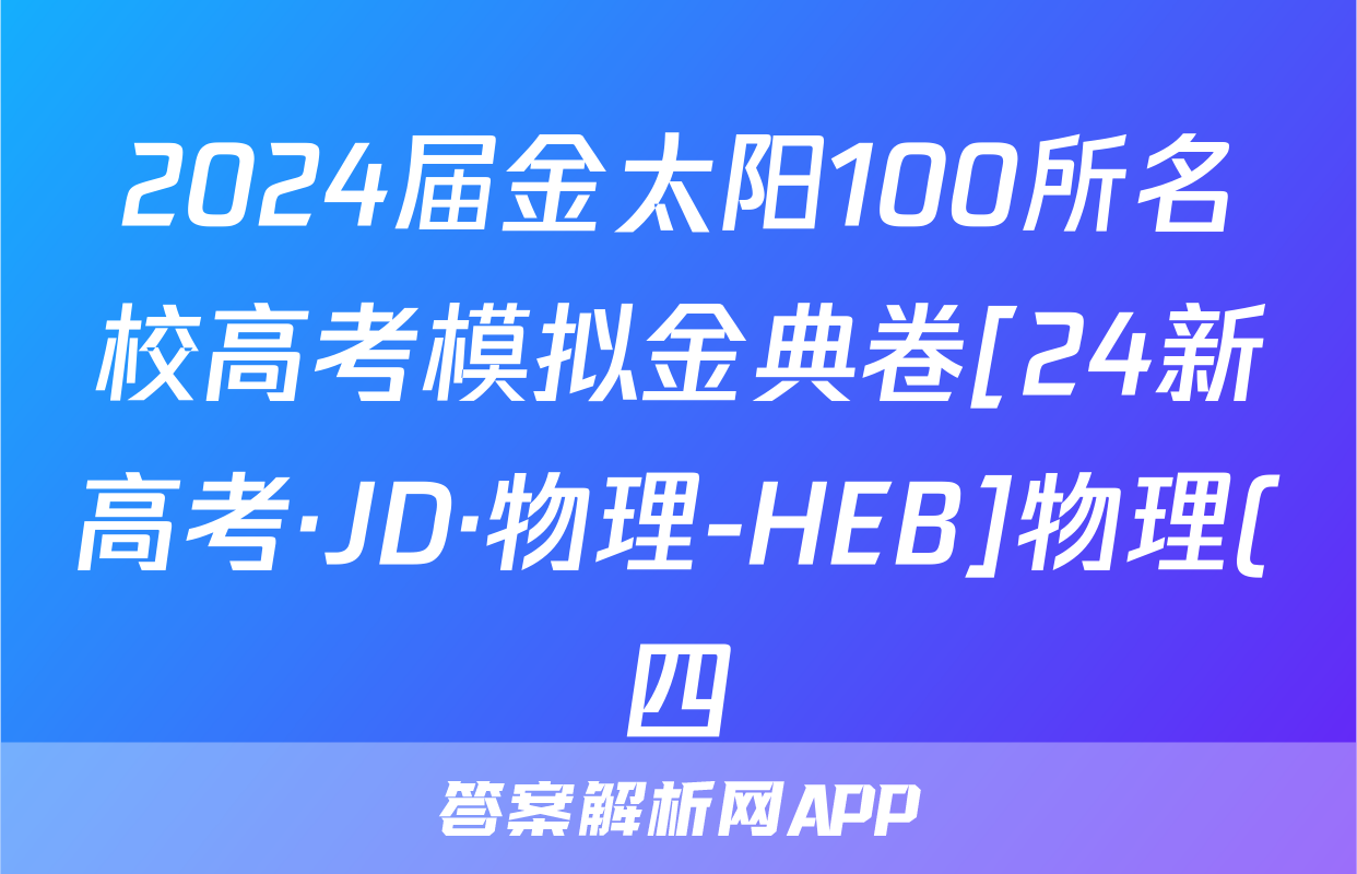 2024届金太阳100所名校高考模拟金典卷[24新高考·JD·物理-HEB]物理(四)4答案正在持续更新,目前大联考答案为大家整理了相关试题及答案,供大家查缺补漏,高效提升成绩。