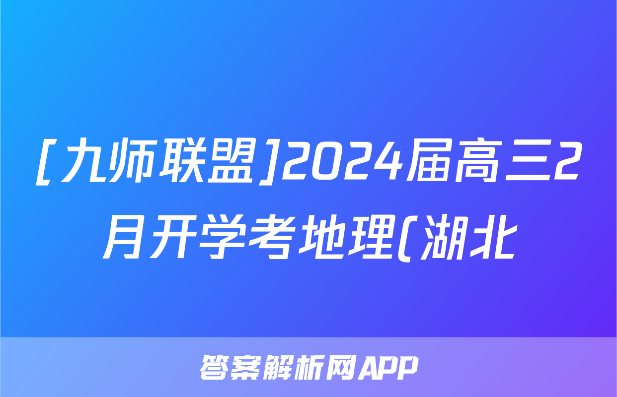[九师联盟]2024届高三2月开学考地理(湖北)试题正在持续更新,目前大联考答案为大家整理了相关试题及答案,供大家查缺补漏,高效提升成绩。
