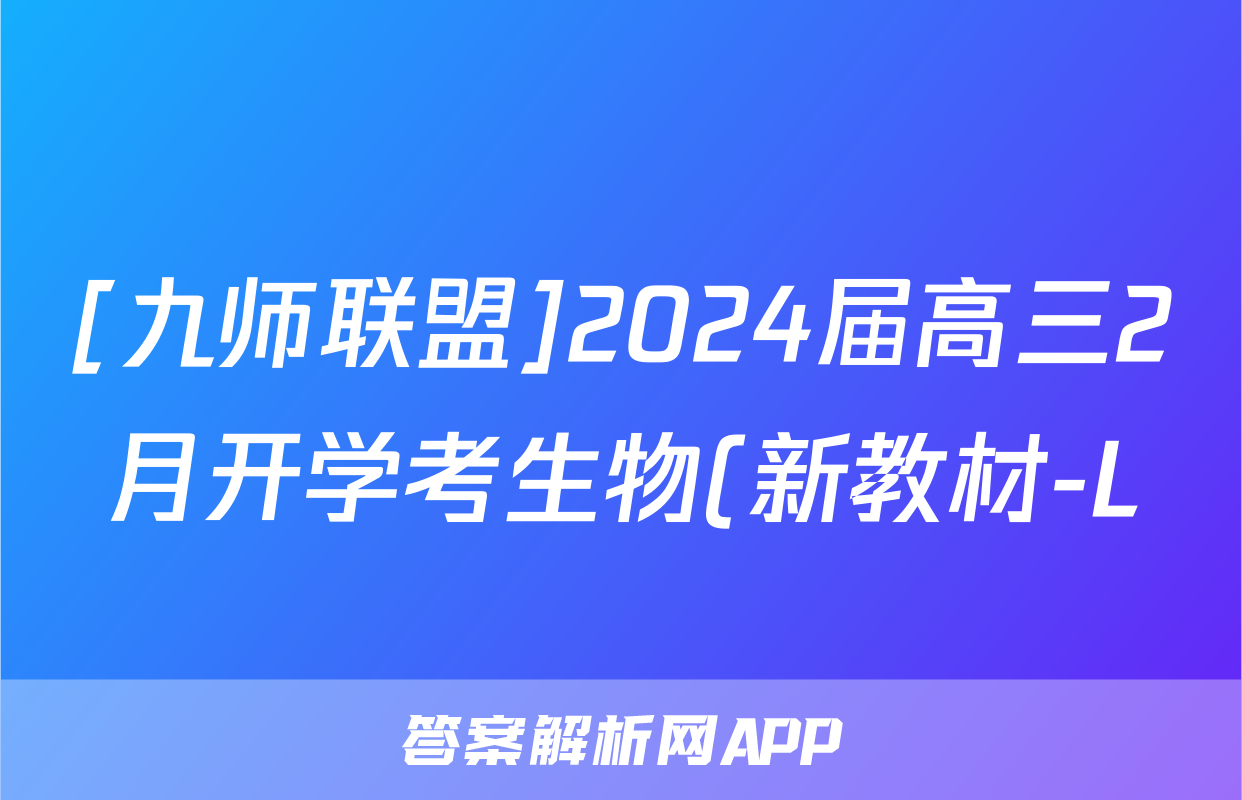 [九师联盟]2024届高三2月开学考生物(新教材-L)试题正在持续更新,目前大联考答案为大家整理了相关试题及答案,供大家查缺补漏,高效提升成绩。
