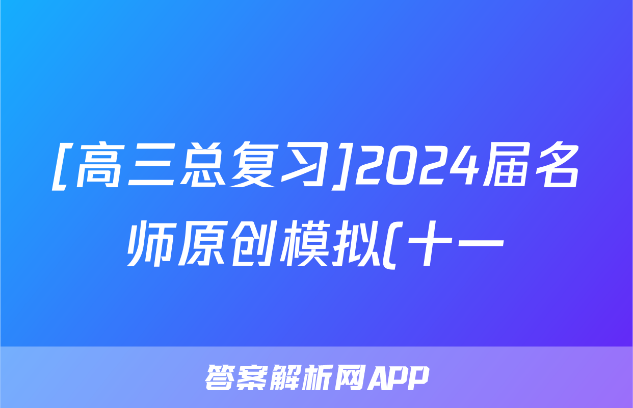 [高三总复习]2024届名师原创模拟(十一)11化学(ZS4)答案正在持续更新,目前大联考答案为大家整理了相关试题及答案,供大家查缺补漏,高效提升成绩。