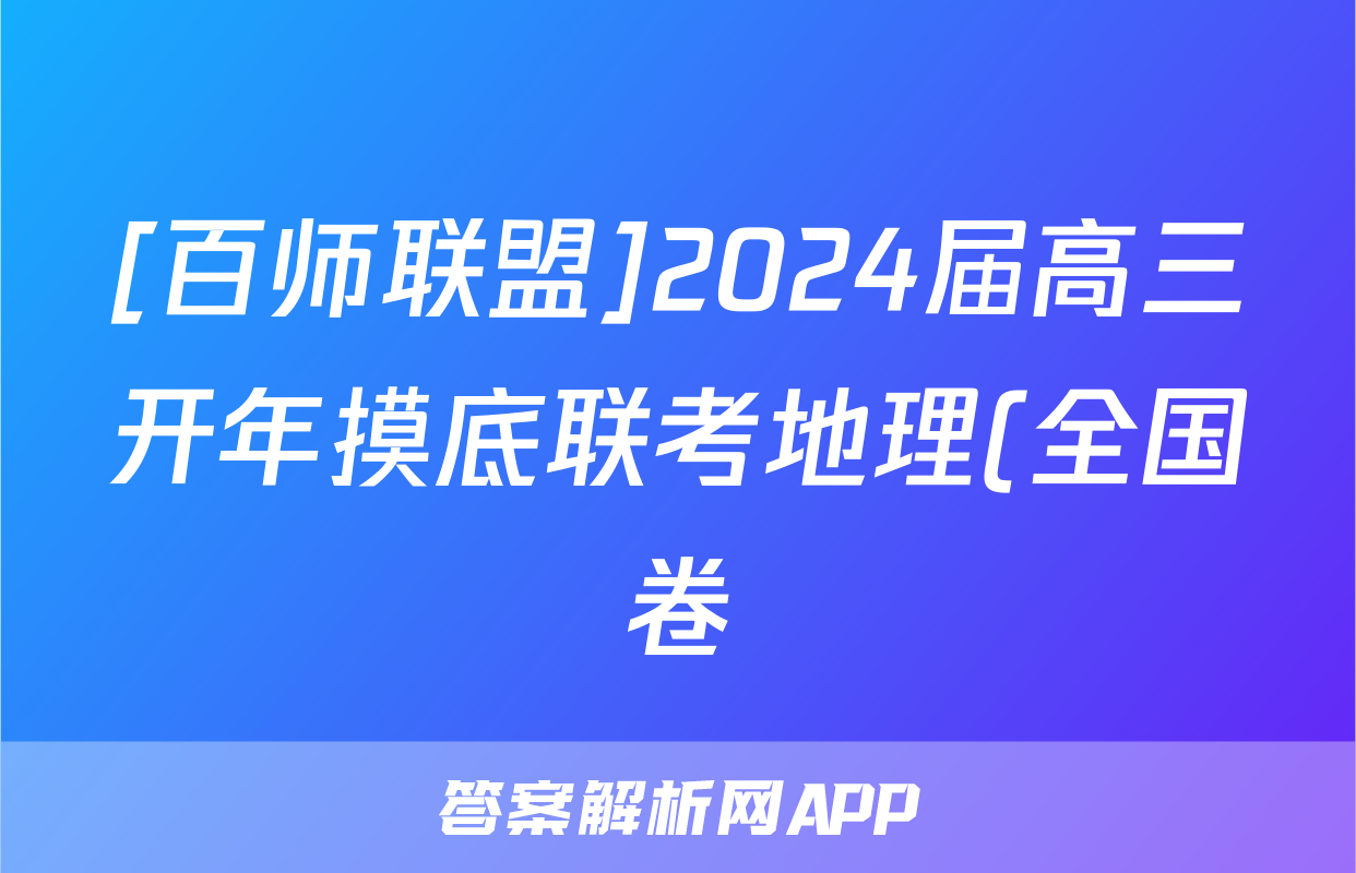 [百师联盟]2024届高三开年摸底联考地理(全国卷)答案正在持续更新,目前大联考答案为大家整理了相关试题及答案,供大家查缺补漏,高效提升成绩。
