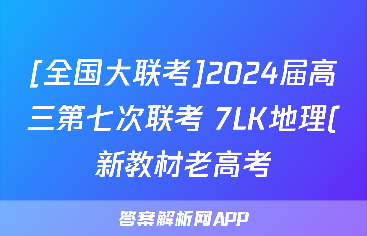 [全国大联考]2024届高三第七次联考 7LK地理(新教材老高考)试题正在持续更新,目前大联考答案为大家整理了相关试题及答案,供大家查缺补漏,高效提升成绩。
