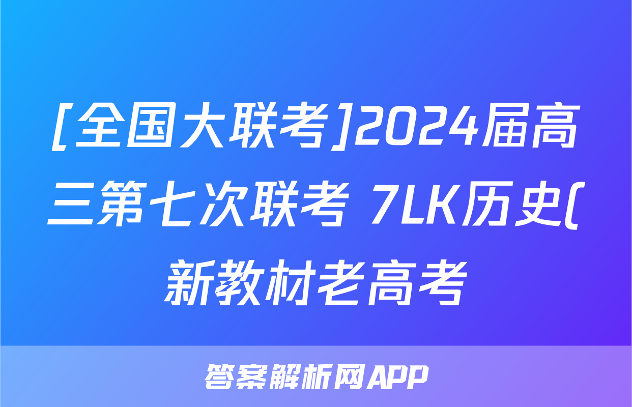 [全国大联考]2024届高三第七次联考 7LK历史(新教材老高考)试题正在持续更新,目前大联考答案为大家整理了相关试题及答案,供大家查缺补漏,高效提升成绩。