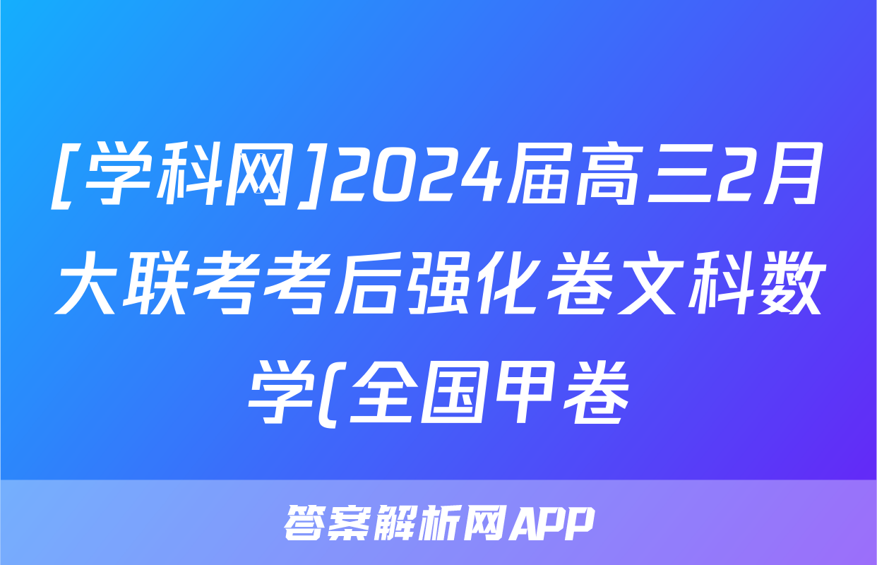 [学科网]2024届高三2月大联考考后强化卷文科数学(全国甲卷)答案正在持续更新,目前大联考答案为大家整理了相关试题及答案,供大家查缺补漏,高效提升成绩。