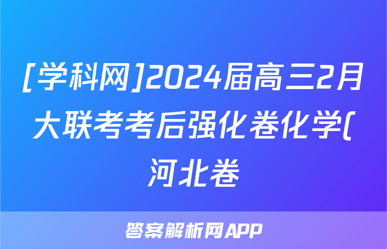 [学科网]2024届高三2月大联考考后强化卷化学(河北卷)答案正在持续更新,目前大联考答案为大家整理了相关试题及答案,供大家查缺补漏,高效提升成绩。