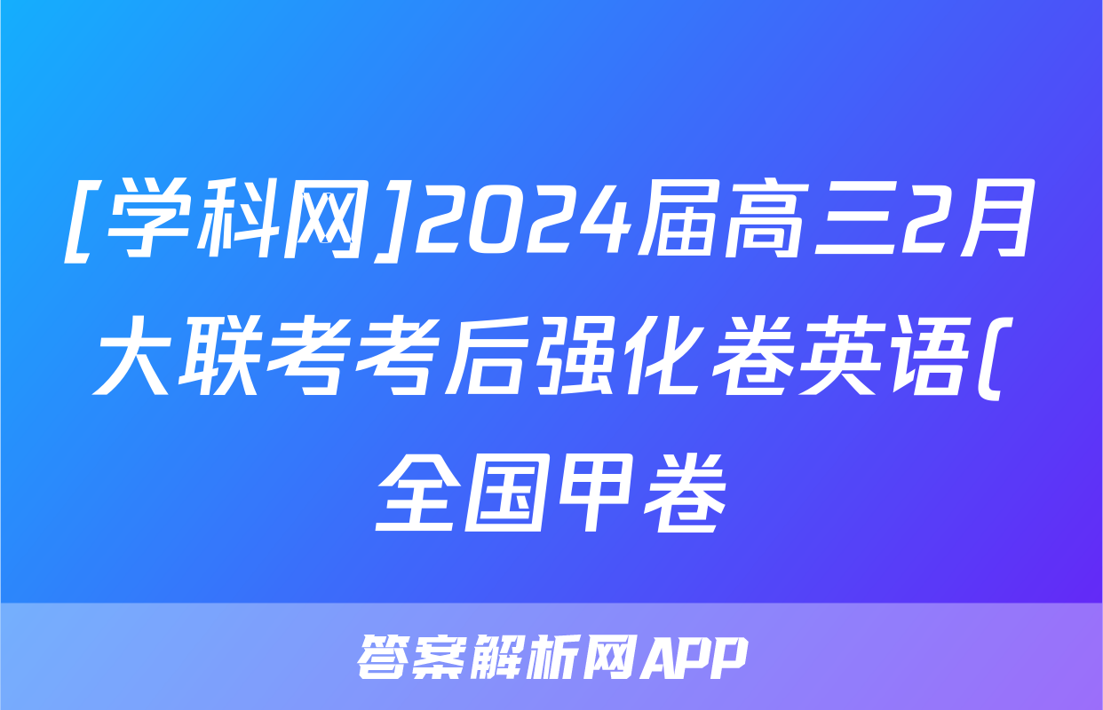 [学科网]2024届高三2月大联考考后强化卷英语(全国甲卷)试题正在持续更新,目前大联考答案为大家整理了相关试题及答案,供大家查缺补漏,高效提升成绩。