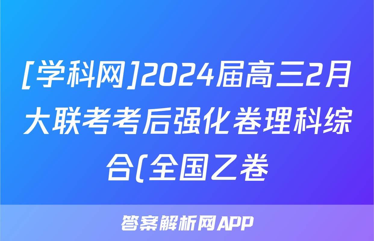 [学科网]2024届高三2月大联考考后强化卷理科综合(全国乙卷)答案正在持续更新,目前大联考答案为大家整理了相关试题及答案,供大家查缺补漏,高效提升成绩。