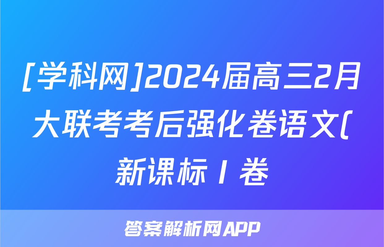 [学科网]2024届高三2月大联考考后强化卷语文(新课标Ⅰ卷)答案正在持续更新,目前大联考答案为大家整理了相关试题及答案,供大家查缺补漏,高效提升成绩。