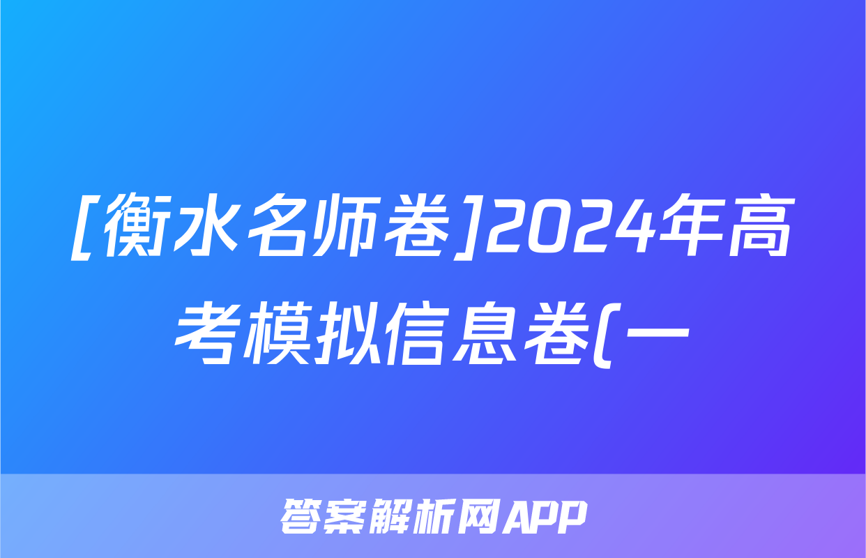 [衡水名师卷]2024年高考模拟信息卷(一)1文科综合(新教材)试题正在持续更新,目前大联考答案为大家整理了相关试题及答案,供大家查缺补漏,高效提升成绩。
