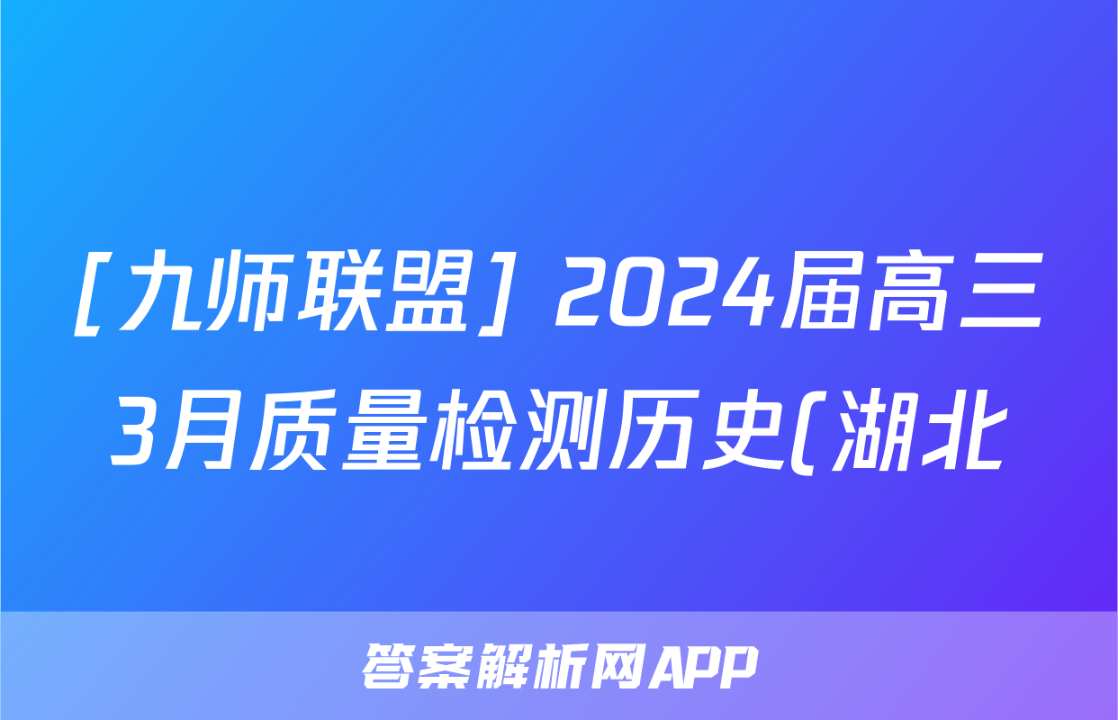 [九师联盟] 2024届高三3月质量检测历史(湖北)答案正在持续更新,目前大联考答案为大家整理了相关试题及答案,供大家查缺补漏,高效提升成绩。