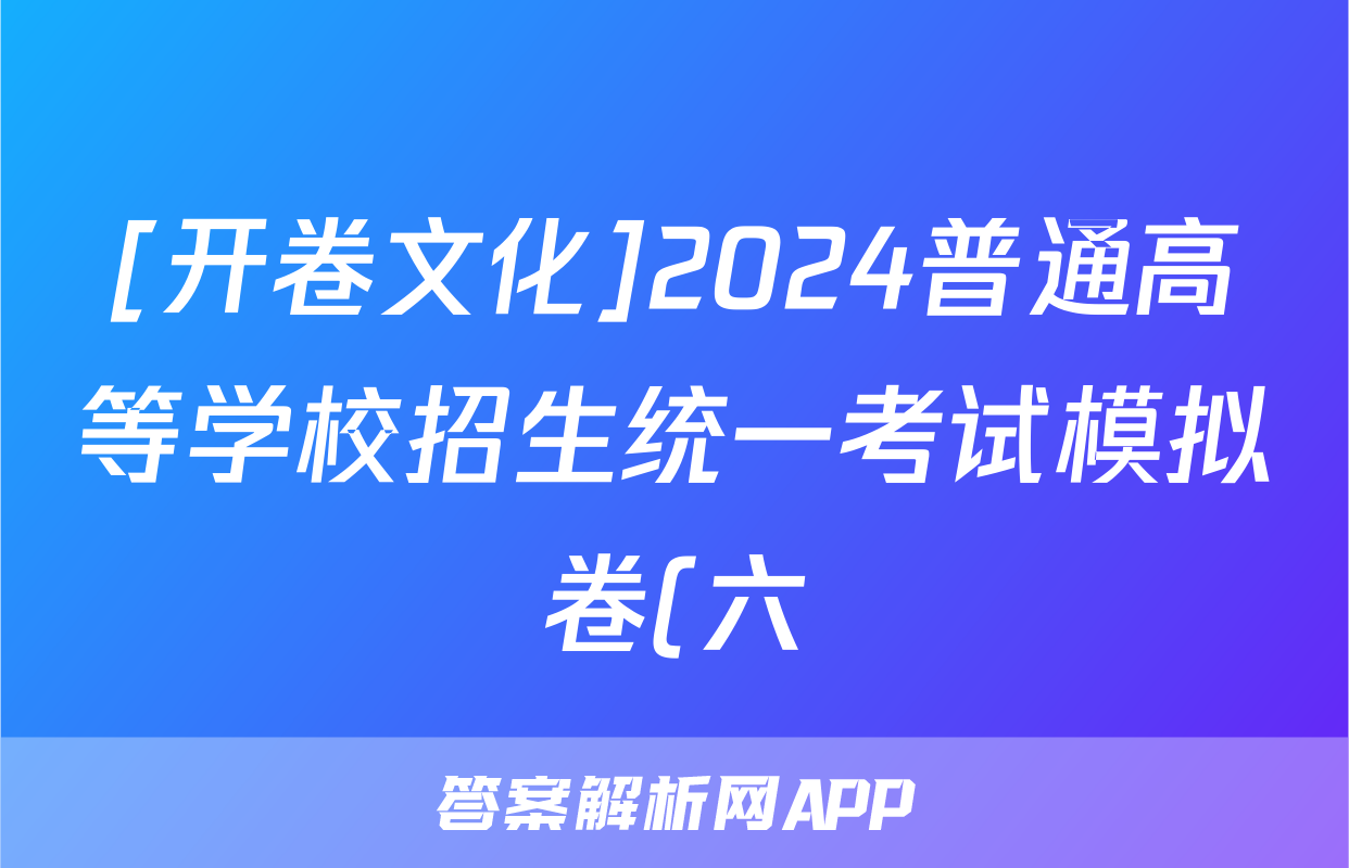 [开卷文化]2024普通高等学校招生统一考试模拟卷(六)6语文XQ答案正在持续更新,目前大联考答案为大家整理了相关试题及答案,供大家查缺补漏,高效提升成绩。