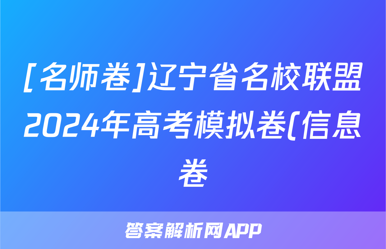 [名师卷]辽宁省名校联盟2024年高考模拟卷(信息卷)(一)1语文(辽宁省)试题正在持续更新,目前大联考答案为大家整理了相关试题及答案,供大家查缺补漏,高效提升成绩。