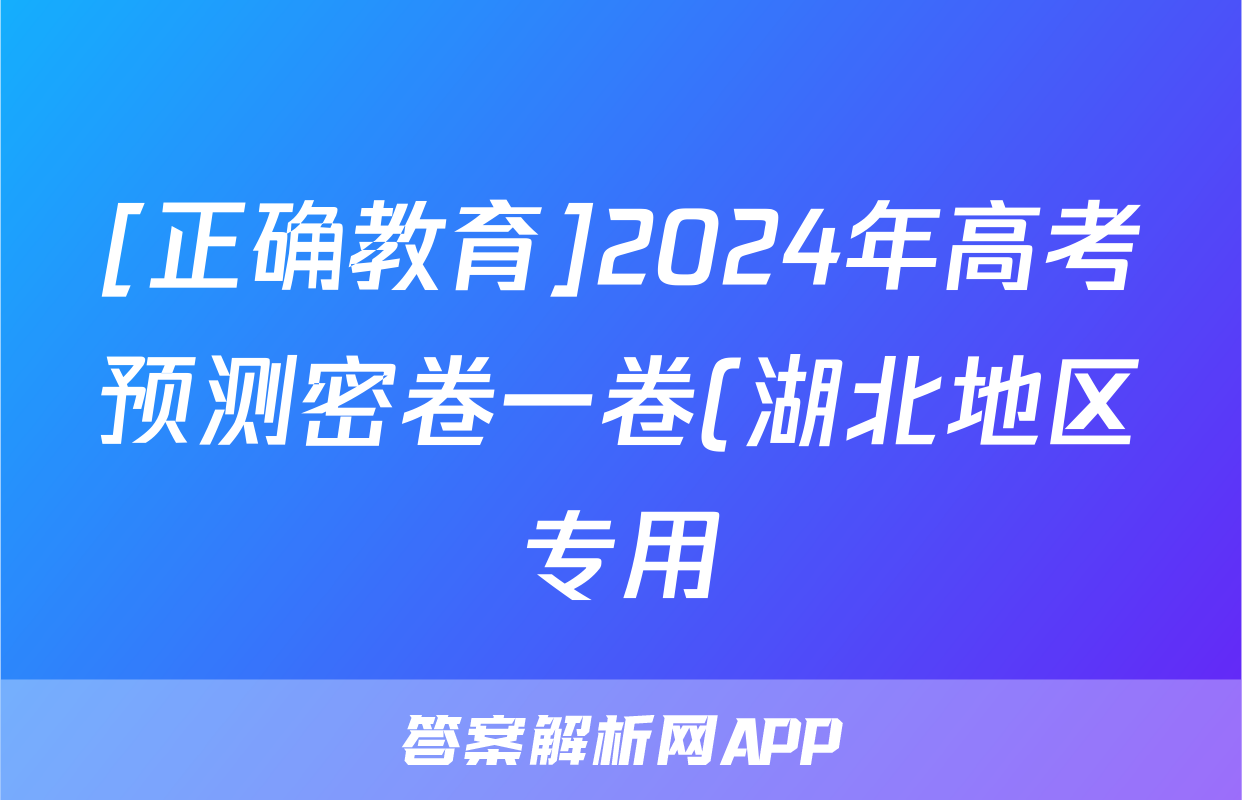 [正确教育]2024年高考预测密卷一卷(湖北地区专用)化学(湖北)试题正在持续更新,目前大联考答案为大家整理了相关试题及答案,供大家查缺补漏,高效提升成绩。