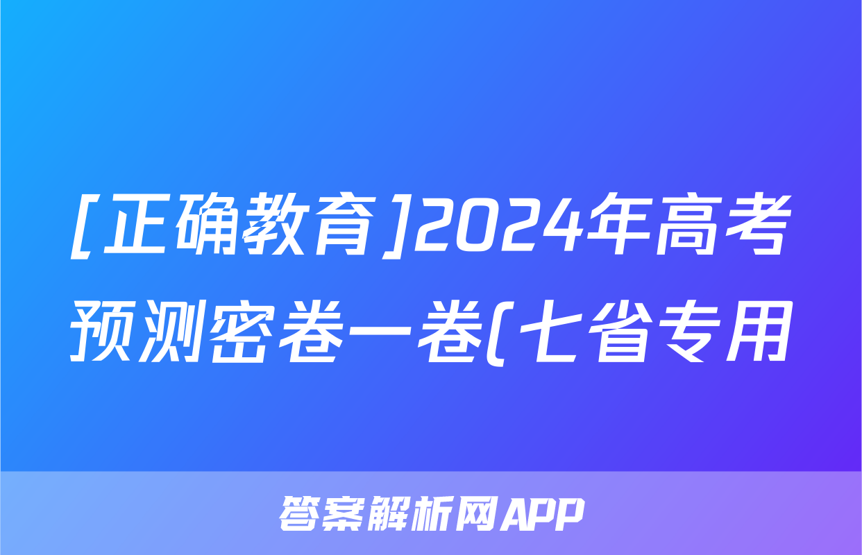 [正确教育]2024年高考预测密卷一卷(七省专用)化学(七省)答案正在持续更新,目前大联考答案为大家整理了相关试题及答案,供大家查缺补漏,高效提升成绩。