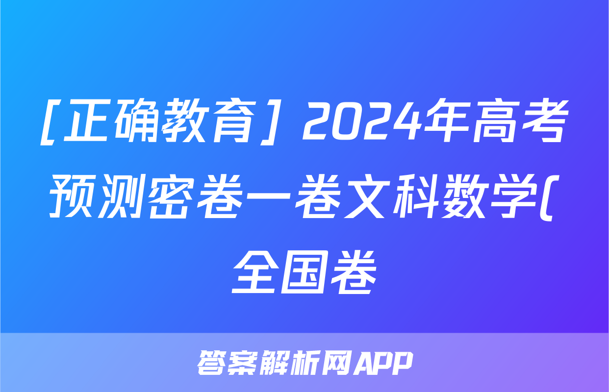 [正确教育] 2024年高考预测密卷一卷文科数学(全国卷)试题正在持续更新,目前大联考答案为大家整理了相关试题及答案,供大家查缺补漏,高效提升成绩。