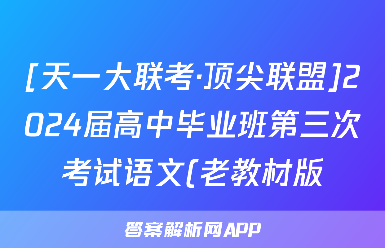 [天一大联考·顶尖联盟]2024届高中毕业班第三次考试语文(老教材版)答案正在持续更新,目前大联考答案为大家整理了相关试题及答案,供大家查缺补漏,高效提升成绩。